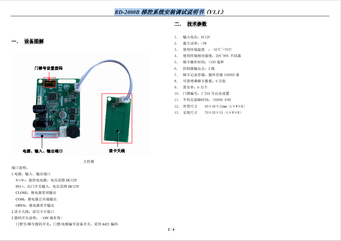 RD-2000B 梯控系統(tǒng)安裝調(diào)試說明書